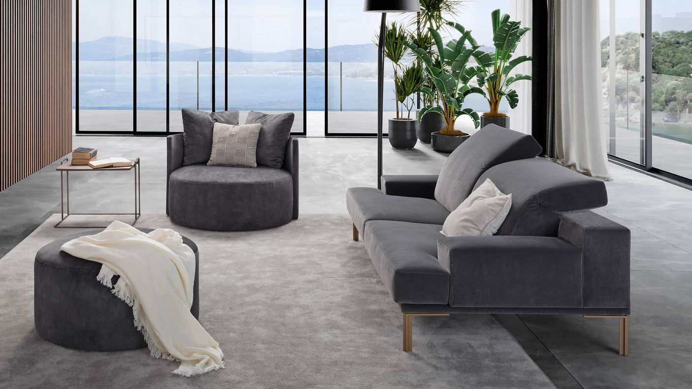 All-round comfort to enjoy alone on the armchair or in company on the sofa and which can be extended with the pouf.
