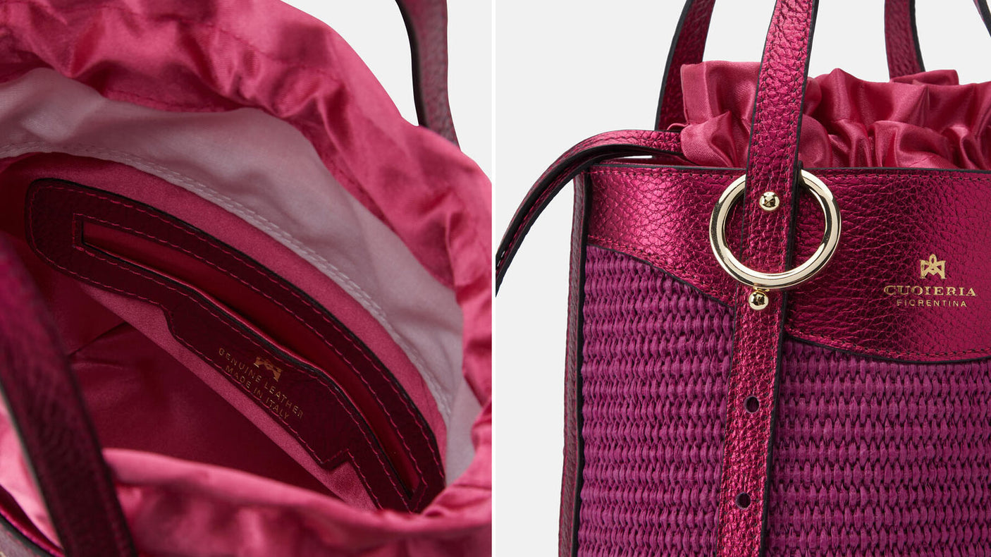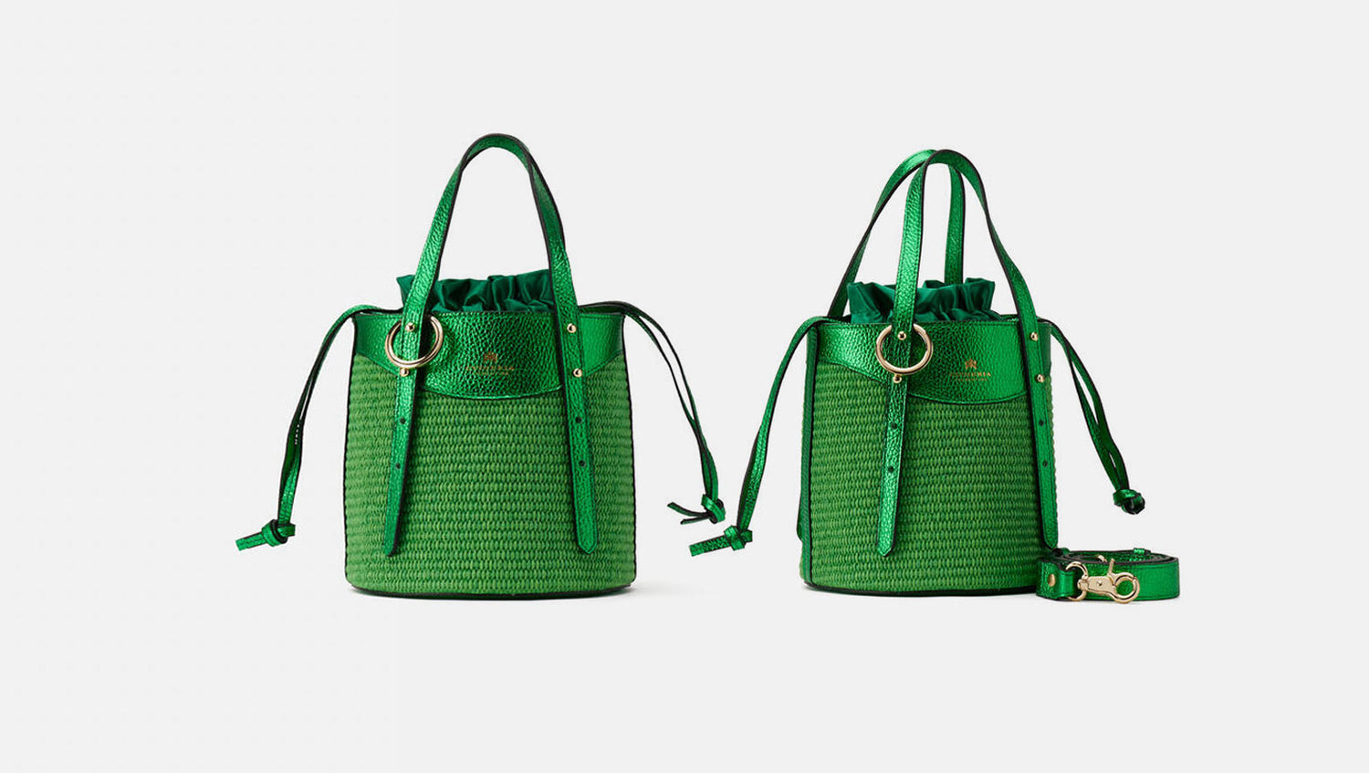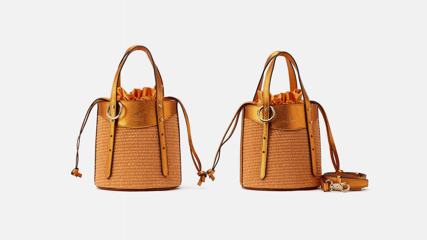 Summer must have: the bucket! The Amber line is a timeless style icon. The ideal companion for summer in the city and for holidays full of glamor and comfort thanks to the use of straw and colored leather details.