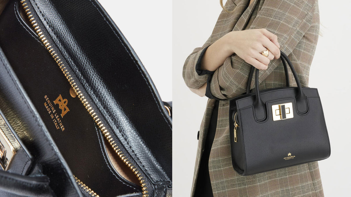 When character mixes with elegance, Bella small tote is born. The small dimensions do not take away the style and personality of the bag, the perfect accessory for those who are not afraid to dare and shine thanks to the golden inserts. The space inside makes it ideal for holding the essentials for the most chic evenings, lipstick and phone. Whether carried by hand or on the shoulder thanks to the removable shoulder strap, it will attract admiring glances.