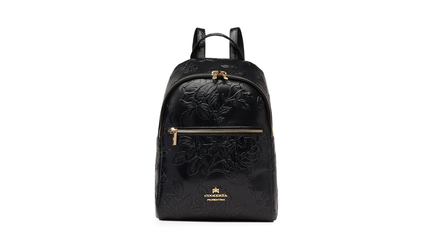 The most recent trends combine with timeless charm and give life to the small Mimì backpack: an ideal backpack for afternoons of shopping or trips out of town. The discreet and bright golden inserts give elegance to the bag, while maintaining the urban and contemporary style. No outfit is complete without a timeless accessory like the Mimi backpack.