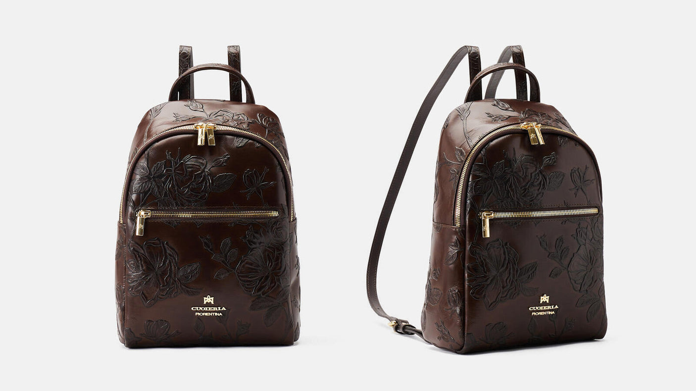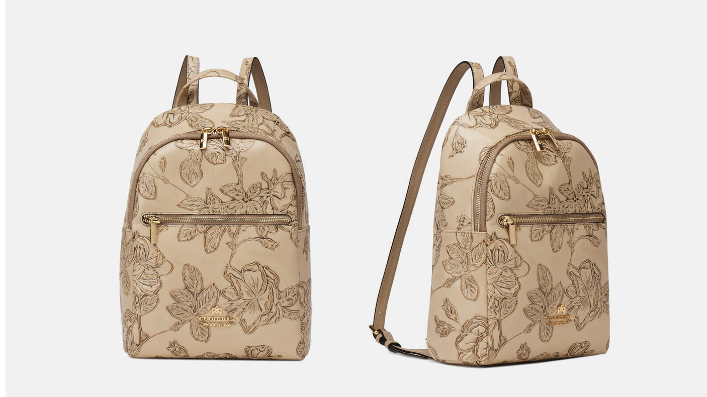 Mimi represents a true style icon and a world exclusive for the brand. The peculiarity is contained in the long and complex process composed of over 13 processing steps of the floral motif. Not just calfskin, but a true work of art, expertly hand-painted on different levels. The final result is a one-of-a-kind material, with which small masterpieces are created.