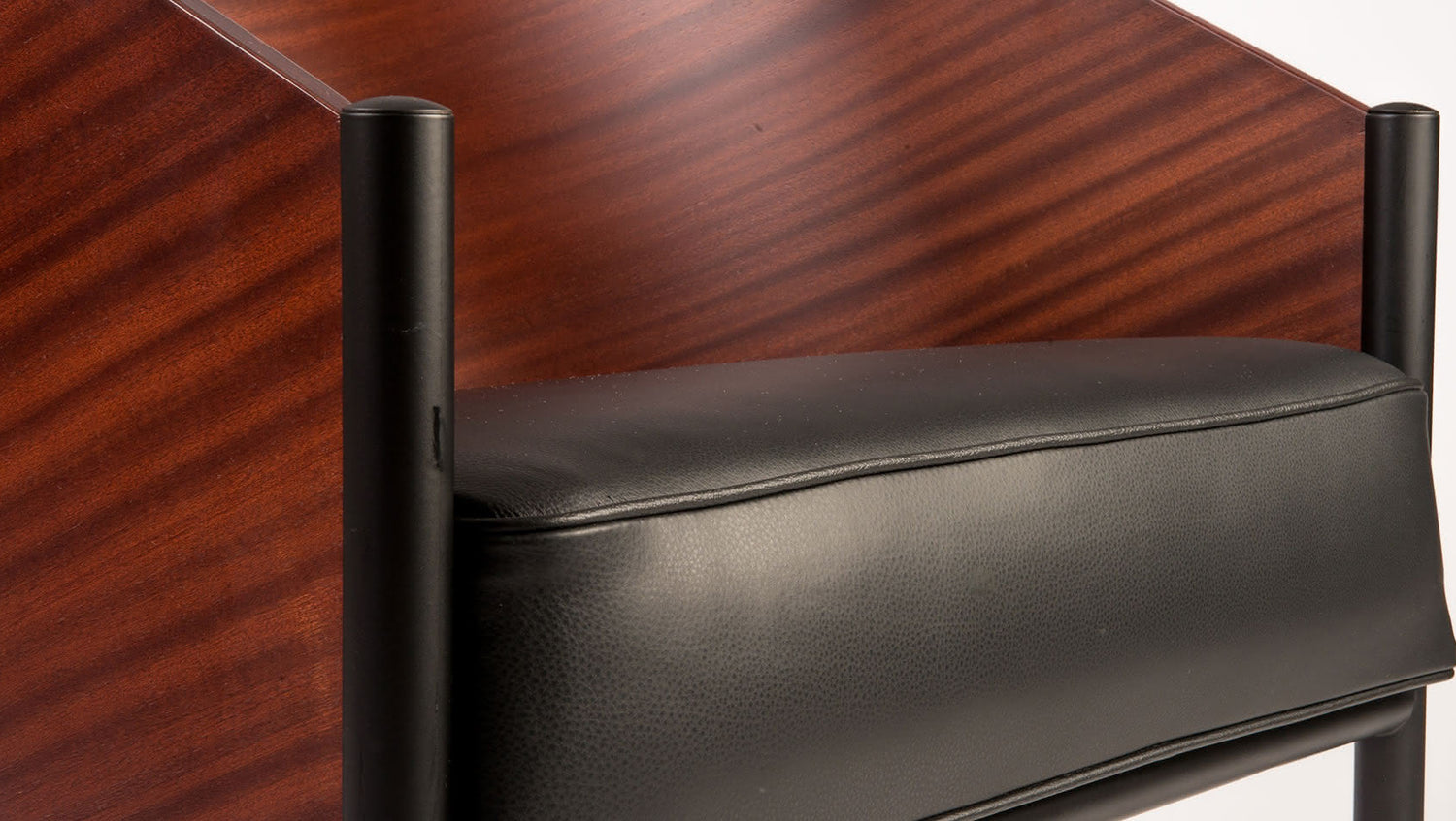 100% Made in Italy. Black painted tubular steel, bent plywood shell with mahogany natural or black, walnut or wengé veneer finish. Seat padded with polyurethane foam. Leather or fabric upholstery.