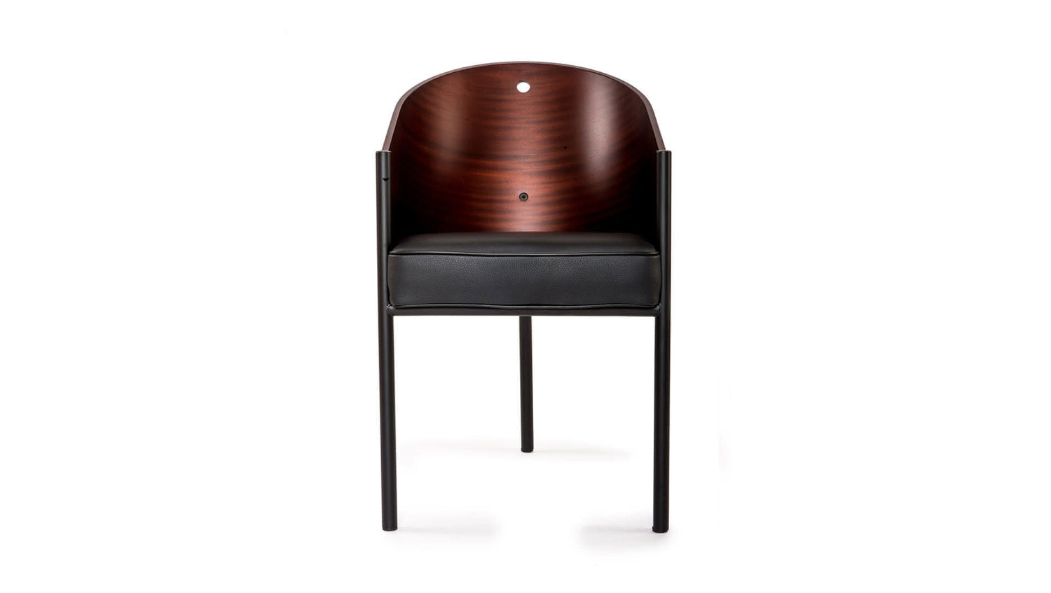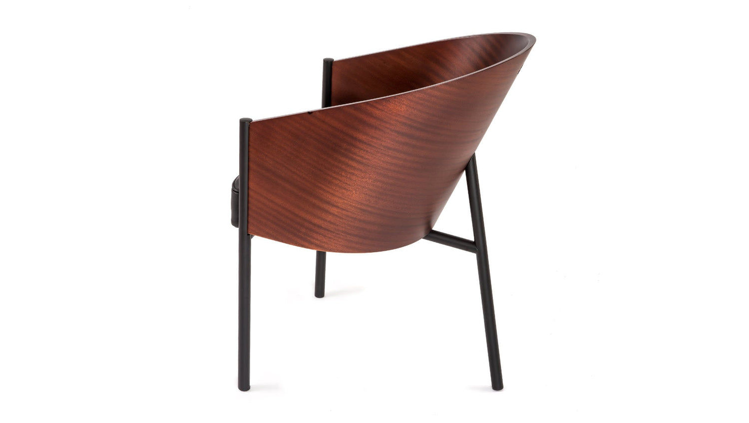 The 'Costes' chair was used in 1981 for the design of the famous Café Costes, on the Place des Innocents in the first arrondissement of Paris, characterized by the use of highly functional, resistant models and simple materials. Designed with a tripod to prevent it from being too cumbersome and obstructing the movements of servers. The chair, wider, takes the tripod model of the Costes chair and was created the following year for the office of French President Mitterrand at the Elysée. Indisputable symbols of elegance and comfort, this chair and armchair (the latter known as “Pratfall”) became icons of contemporary design in the 1980s.