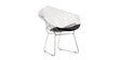 Chairs with their abstract-geometric design, are made from a webbed structure of metal rods, which form both the back and the seat of the chair. This creations respond to practical criteria, but they are also the result of studies on form, space and volume. Certainly, in these chairs it is possible to recognize approach to designing a chair mirroring approach to sculpture. Designed in 1952, the “Diamond Chair” was an immediate success and it is still in great demand all over the world. “Space passes through them and, looking at them closely, our perception is that they are made of air, just like sculptures”. Polished or lacquered chromium-plated welded steel circle frame. Removable cushion filled with polyurethane foam with leather, fabric or pony upholstery.