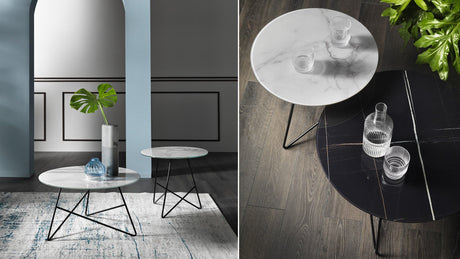 From €1.461,56€1.948,75Unit price /Unavailable TULIP Round side table with Sahara marble top