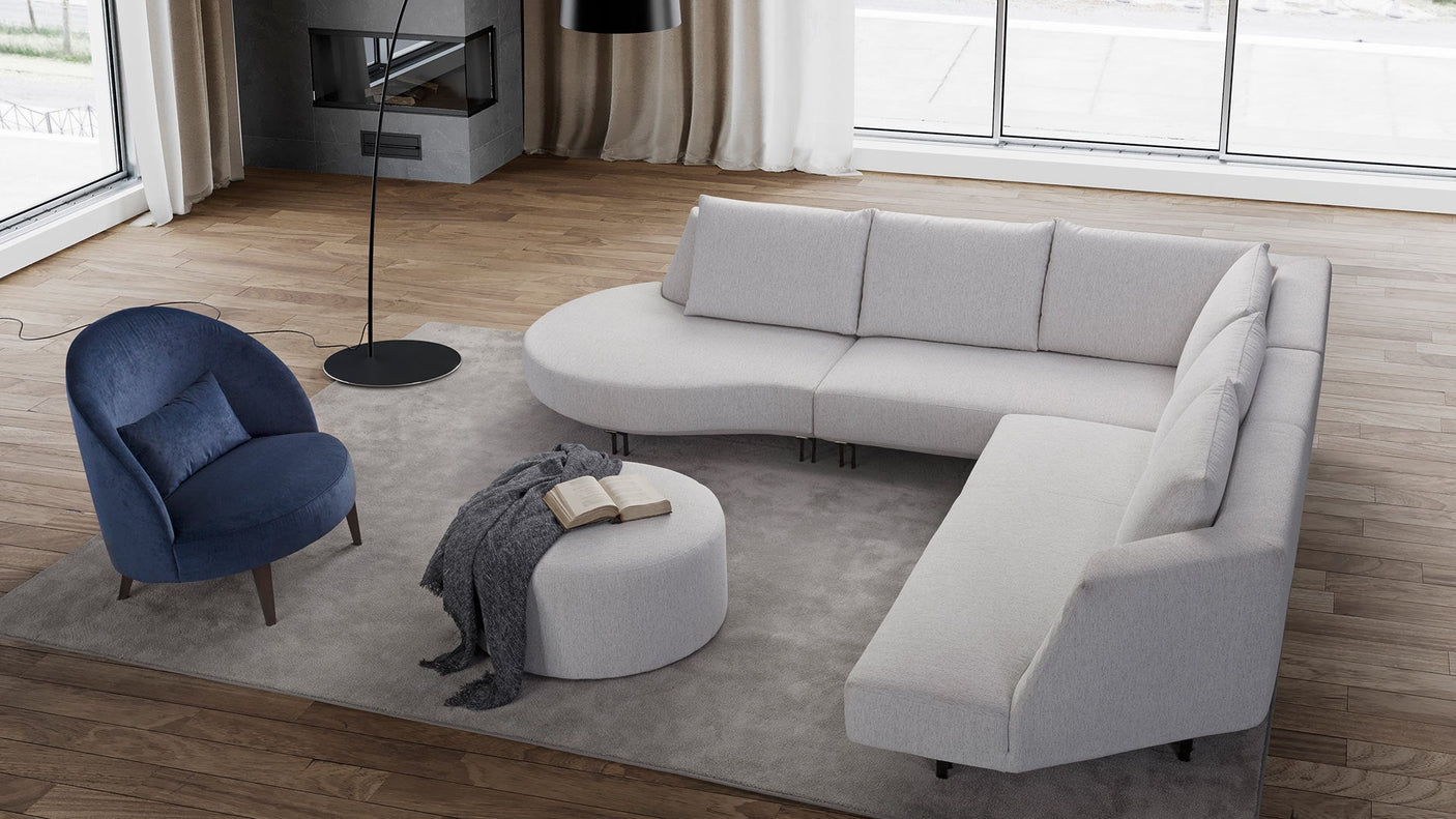 1 curved peninsula left (cod. 9) W130 x D102/130 cm