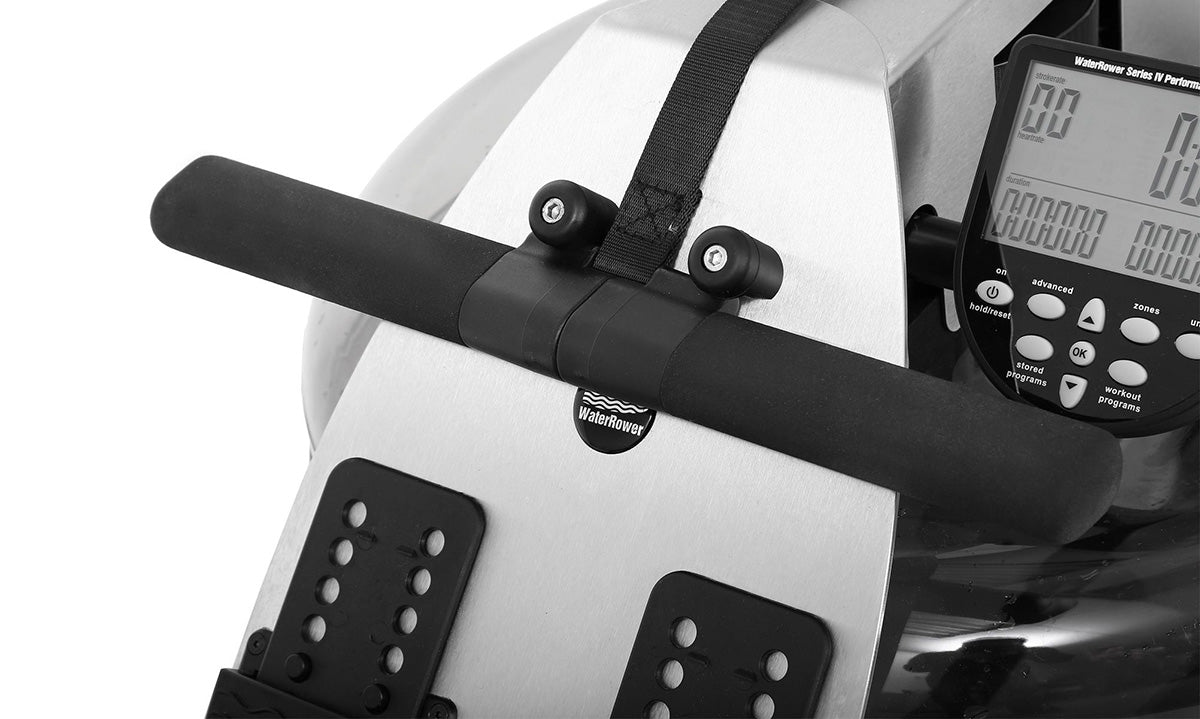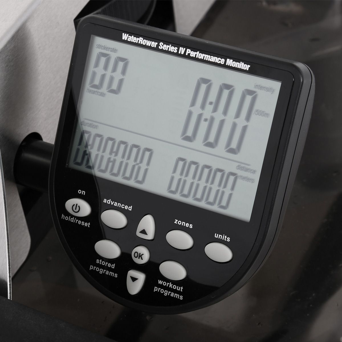 S1 series double track rower in stainless steel with water resistance. Included with the S4 performance monitor displays time, distance, intensity. Movement frequency and heart rate needs a separate "cardio kit".