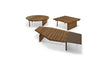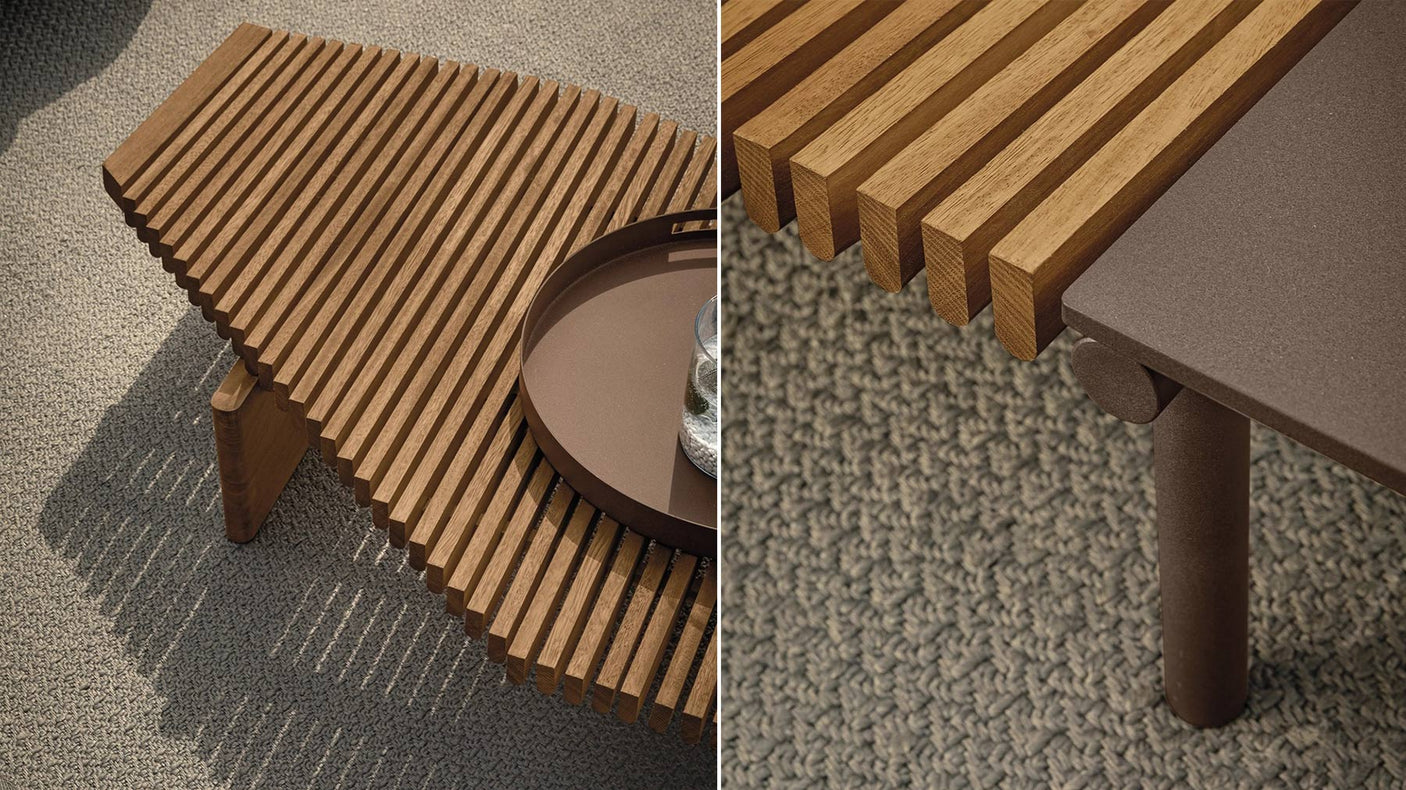 Composed of taut lines, in solid wood, the tables appear like signs of solar shadows and cut-outs of tops in two finishes: one in Corten steel and the other enameled, which intersect to generate the expressive lexicon of Talamone . A personal and idealized interpretation of the Mediterranean sun put into dialogue with rhythmic oriental nuances, in a stratification of signs and chromatic accents, typical of the multicultural language of our time. The shapes of the surfaces, composed and irregular, refer to modern and primordial compositional know-how.
