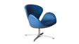 Drehstuhl. Sockel aus gebürstetem und poliertem Aluminiumguss, verstärkter Glasfaserrahmen, gepolstert mit Polyurethanschaum; Leder-, Baumwolle + Leinen oder Kaschmirbezug.