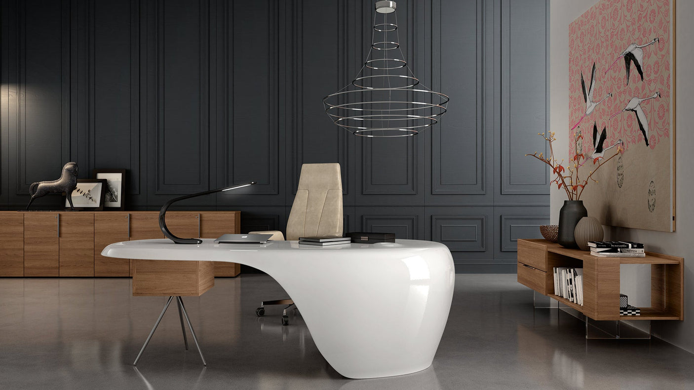 100% Made in Italy. Design und Eleganz sind die Eigenarten dieses Projekt, das sich durch Form und Innovation auszeichnet. Die Verwendung innovativer Materialien, die für Büromöbel ungewöhnlich, aber äußerst ansprechend sind, ermöglichen eine mögliche Platzierung des Produkts auch in verschiedenen Bereichen,die sich wirklich von denen unterscheiden, für die es ursprünglich hergestelltwurde. Wohnraum, Willkommenspunkte, Geschäfte oder Galerien werden zu möglichen Bereichen, die mit der klaren Linie dieses Modells definiert werden können.