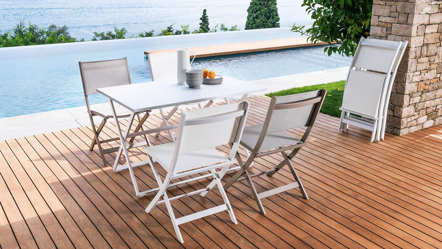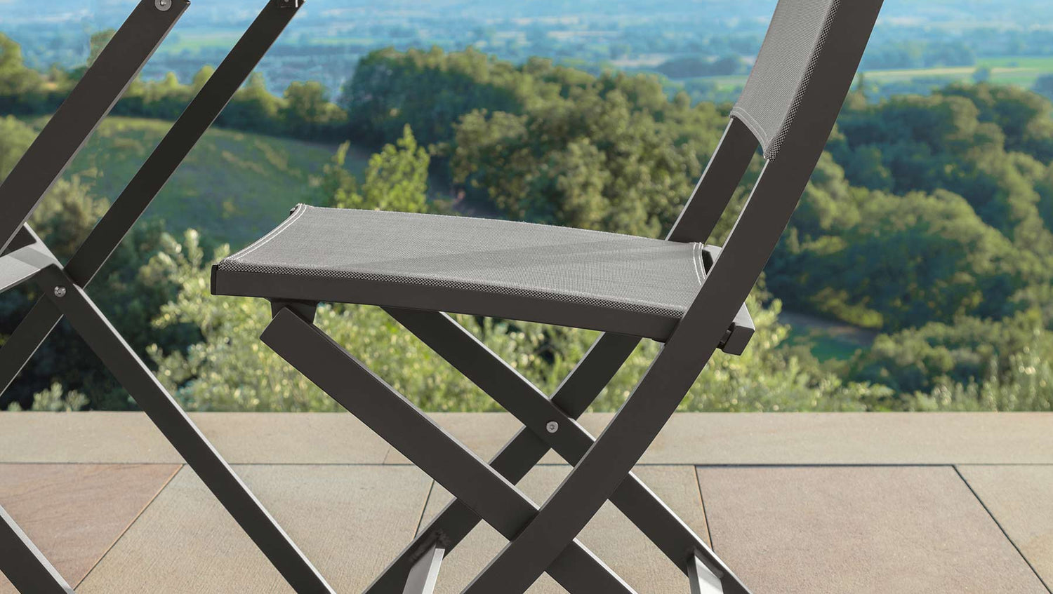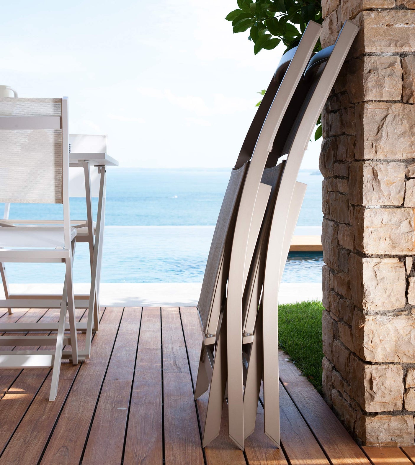 Der leichte, handliche Klappstuhl der Kollektion Queen überrascht durch seine Bequemlichkeit. Er passt sich jeder Situation an, egal ob am Swimmingpool, auf der Terrasse oder auch drinnen, und zeichnet sich durch seine schwerelose Form aus. Die weichen Linien der komplett aus Aluminium gefertigten Rahmenkonstruktion präsentieren sich mit einer Sitzfläche und Rückenlehne aus Textilene. Die Qualität der verwendeten Materialien krönt dieses äußerst vielseitige.