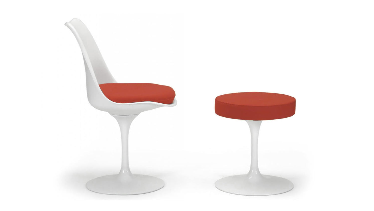 Der „Tulip Chair“ ist das erste Modell derberühmten „Sockel Series“. Dies ist der Höhepunkt der Arbeitauf dem Gebiet des „organischen Designs“. Die Industrie war in den 1950er Jahren nichtin der Lage, seine Idee erfolgreich umzusetzen, weshalb eine Basis für dieAluminiumfusion hergestellt werden musste. Basis aus Aluminiumguss. Glasfaserschale. Mit Klettbandbefestigtes Kissen, gepolstert mit Polyurethanschaum mit Stoff- oder Lederbezug.