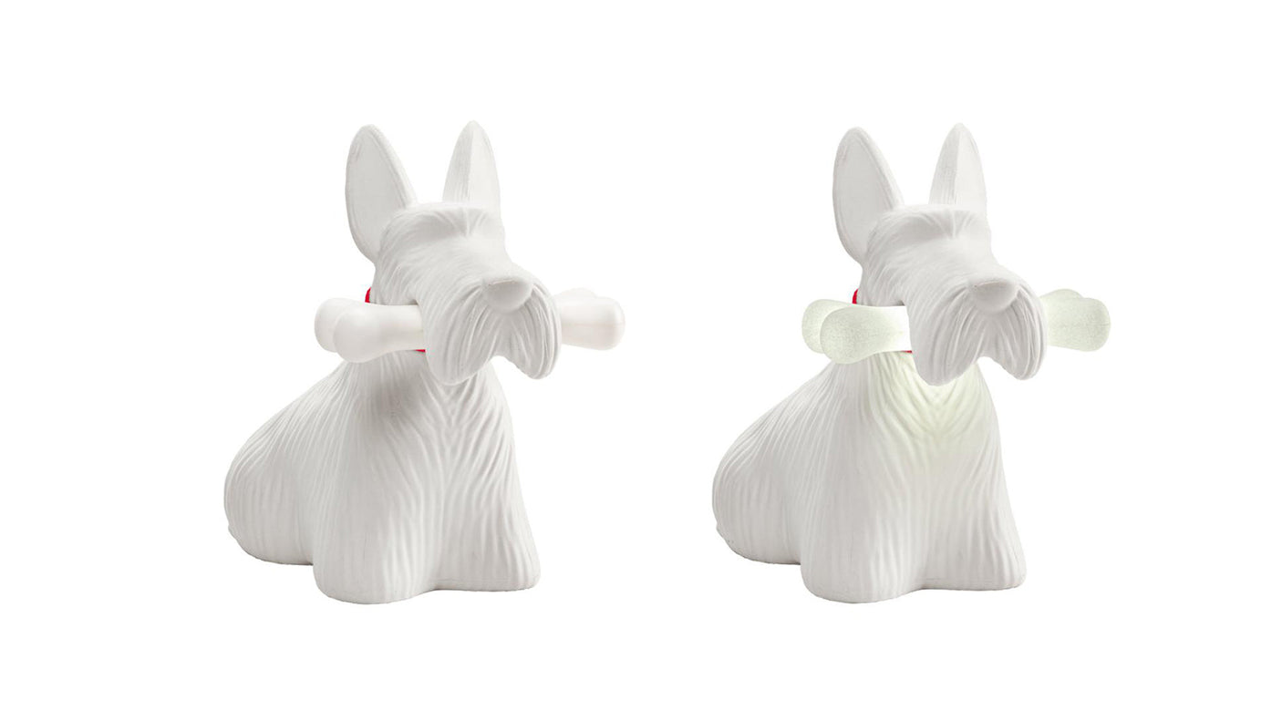 Scottie möchte adoptiert werden! Laut Stefano Giovannoni ist das, was ich an vier Orten liebe, bereit, eine fröhliche Atmosphäre in Ihr Zuhause zu bringen und jemandem Freude zu bereiten, der sich nie davon trennt. Dieses beruhigende und unangepasste Leuchtobjekt ist ein perfekter Haushaltsgegenstand, der Sie jeden Tag beim Abendessen begleitet. Die Lampe kann kabellos über eine Fernbedienung bedient werden.