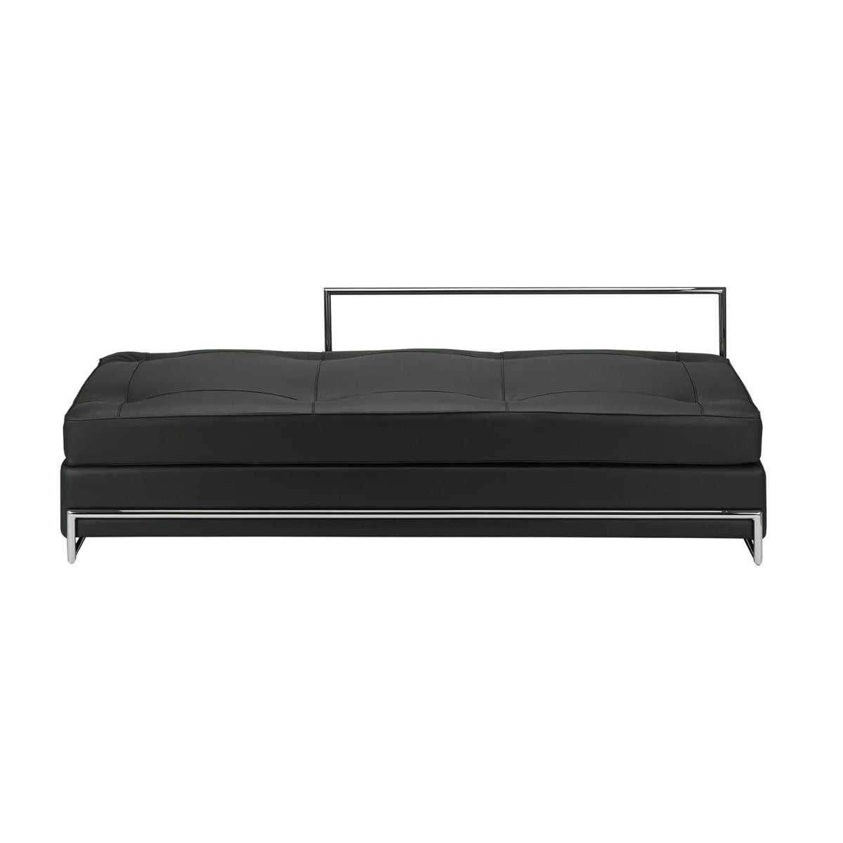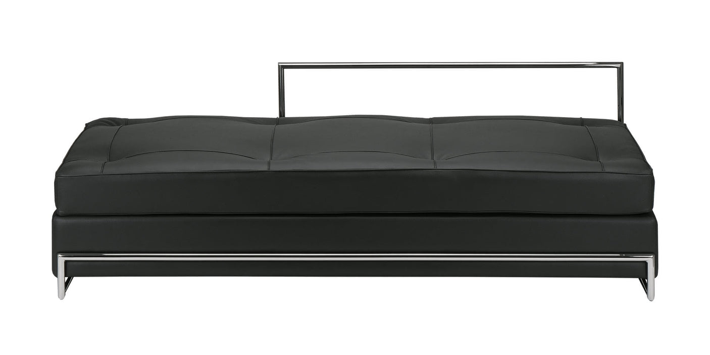 “Il offre une assise agréable et confortable et surtout, est particulièrement adapté à la détente”.  Sa particularité réside dans le fait qu’il est possible d’y accéder de chaque côté, tout en restant extrêmement beau quel que soit le côté dont on le regarde. Une élégance qui s’exalte dans les environnements spacieux et lumineux. Le daybed est l’expression du nouveau langage stylistique, du tournant qui l’amena de l’Art Deco aux formes plus rigoureuses et essentielles du Modernisme. Le tube d’acier en est le témoin.  Le daybed fut lui aussi conçu pour la maison de Madame Mathieu-Lévy à Rue de Lota, mais trouva ensuite sa place dans la célèbre “Maison en bord de mer”.