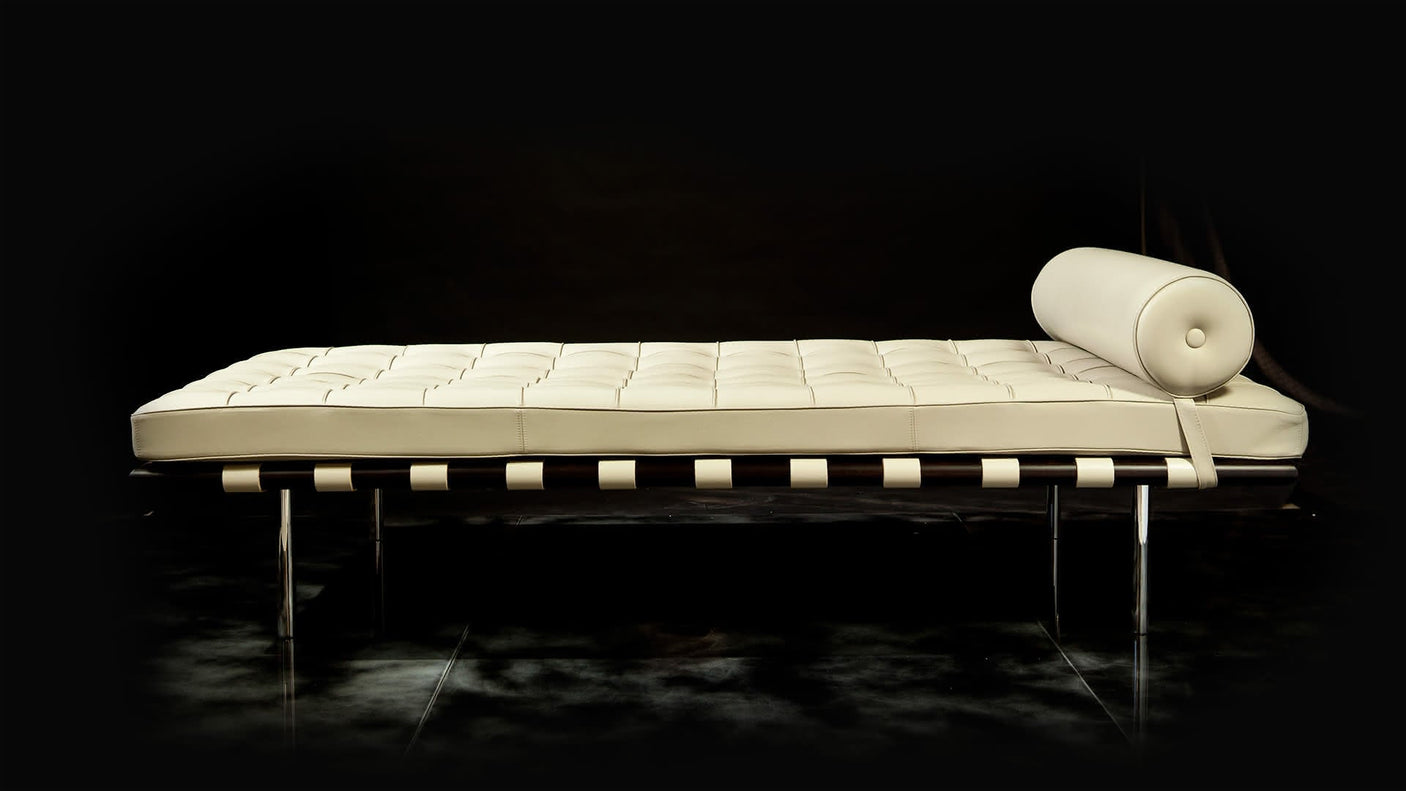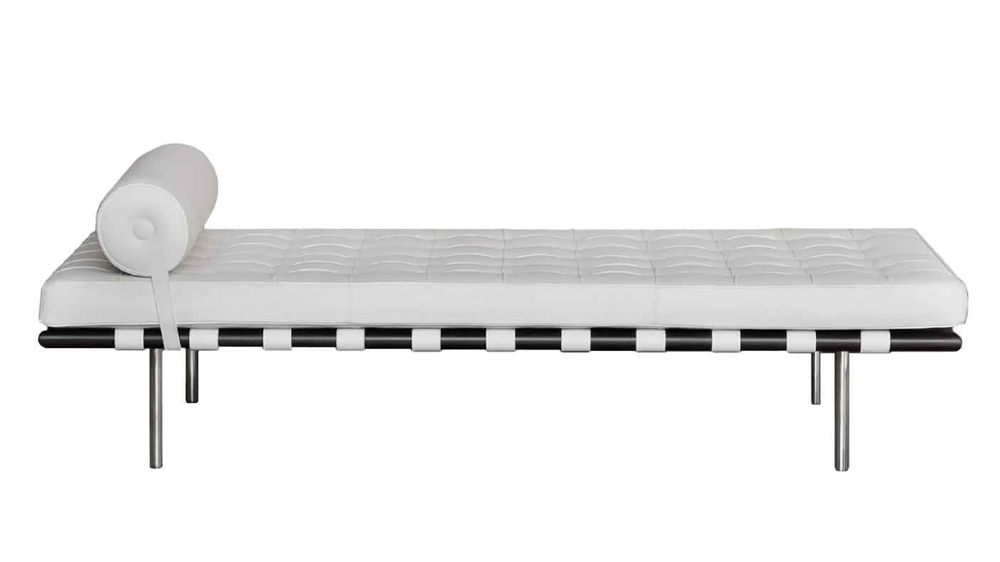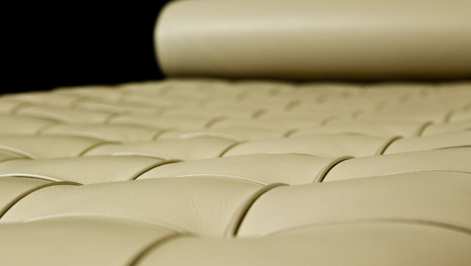 100% Made in Italy. Structure en bois massif fraké. Pieds en acier chromé. Sangles de soutien en cuir doublé de couleur semblable au revêtement en cuir. Matelas en polyuréthane expansé avec revêtement en cuir à carreaux. Appui-tête en polyuréthane expansé avec revêtement en cuir.