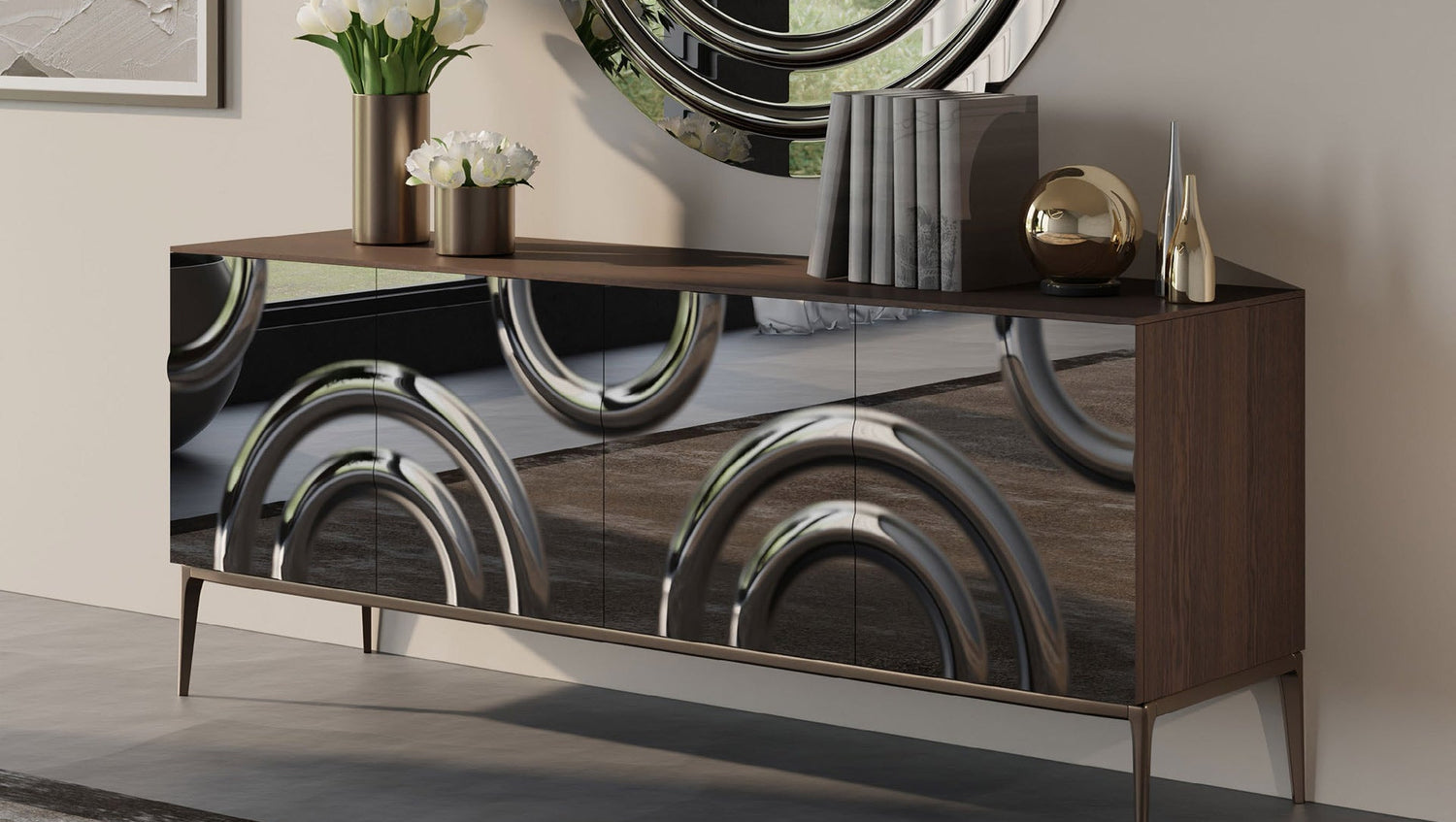 Buffet disponible en différentes finitions, matériaux et avec différentes bases.