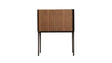 Modules en noyer Canaletto ou mdf plaqué chêne teinté wengé. Plateau disponible en différents matériaux et finitions. Étagère centrale en verre fumé réglable en hauteur.