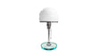 Lampe de table. Socle en verre biseauté. Tige en verre tubulaire avec tube et support intérieur en laiton chromé. Diffuseur en verre blanc opalin soufflé sur un moule en bois.