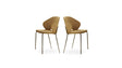 Chaise avec structure en métal peint avec assise et dossier en contreplaqué avec revêtement en différents matériaux et couleurs.