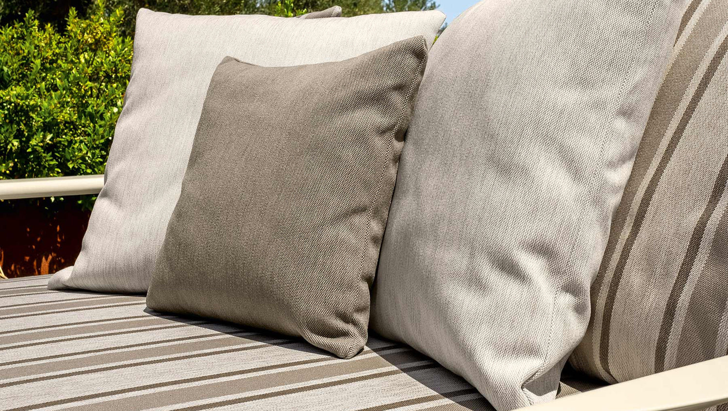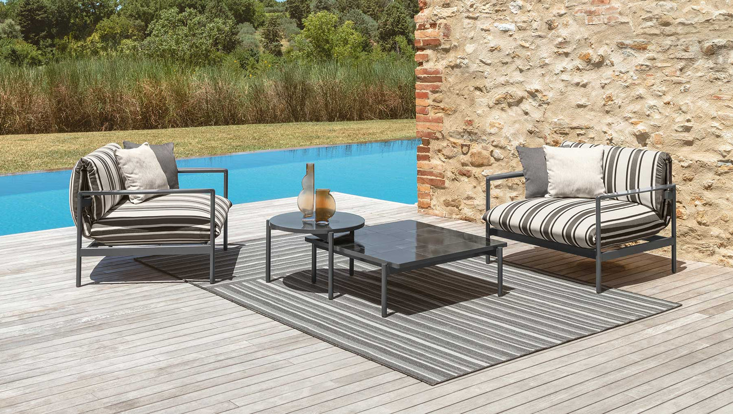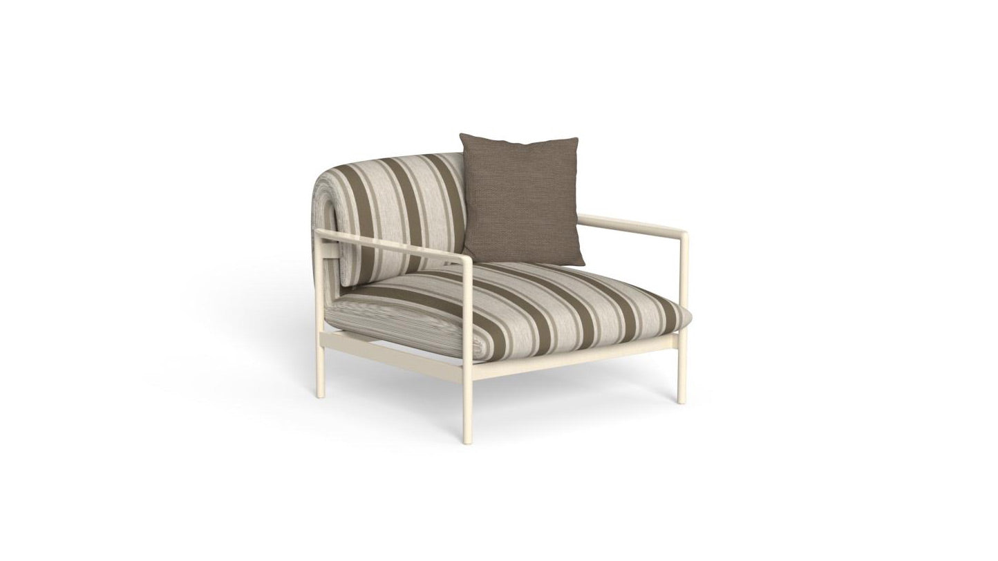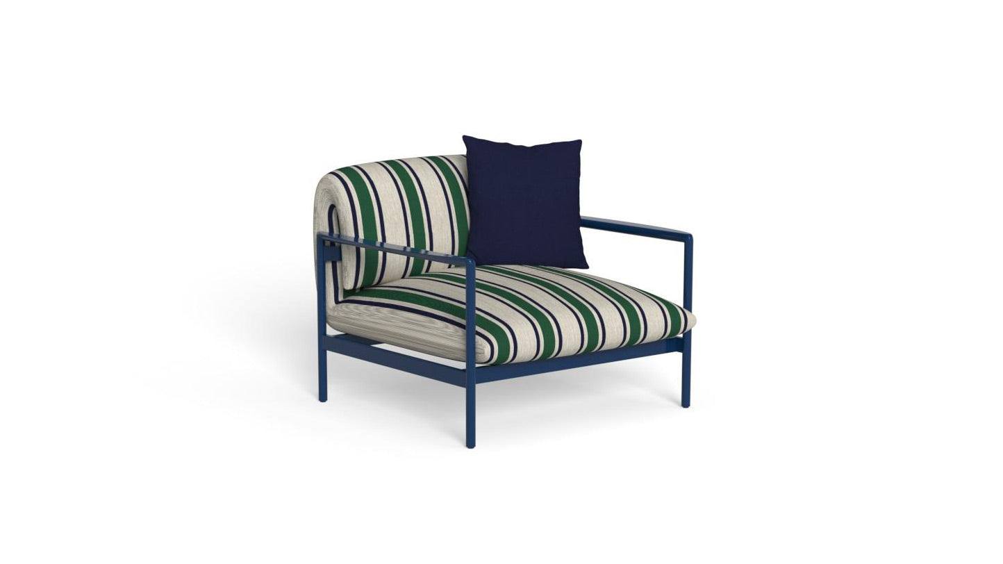 Indépendant de la collection, le fauteuil de salon conçu par Ludovica Serafini et Roberto Palomba est une grande et confortable pièce de design d'inspiration moderniste en aluminium peint et en tissu conçue spécifiquement pour cette collection.