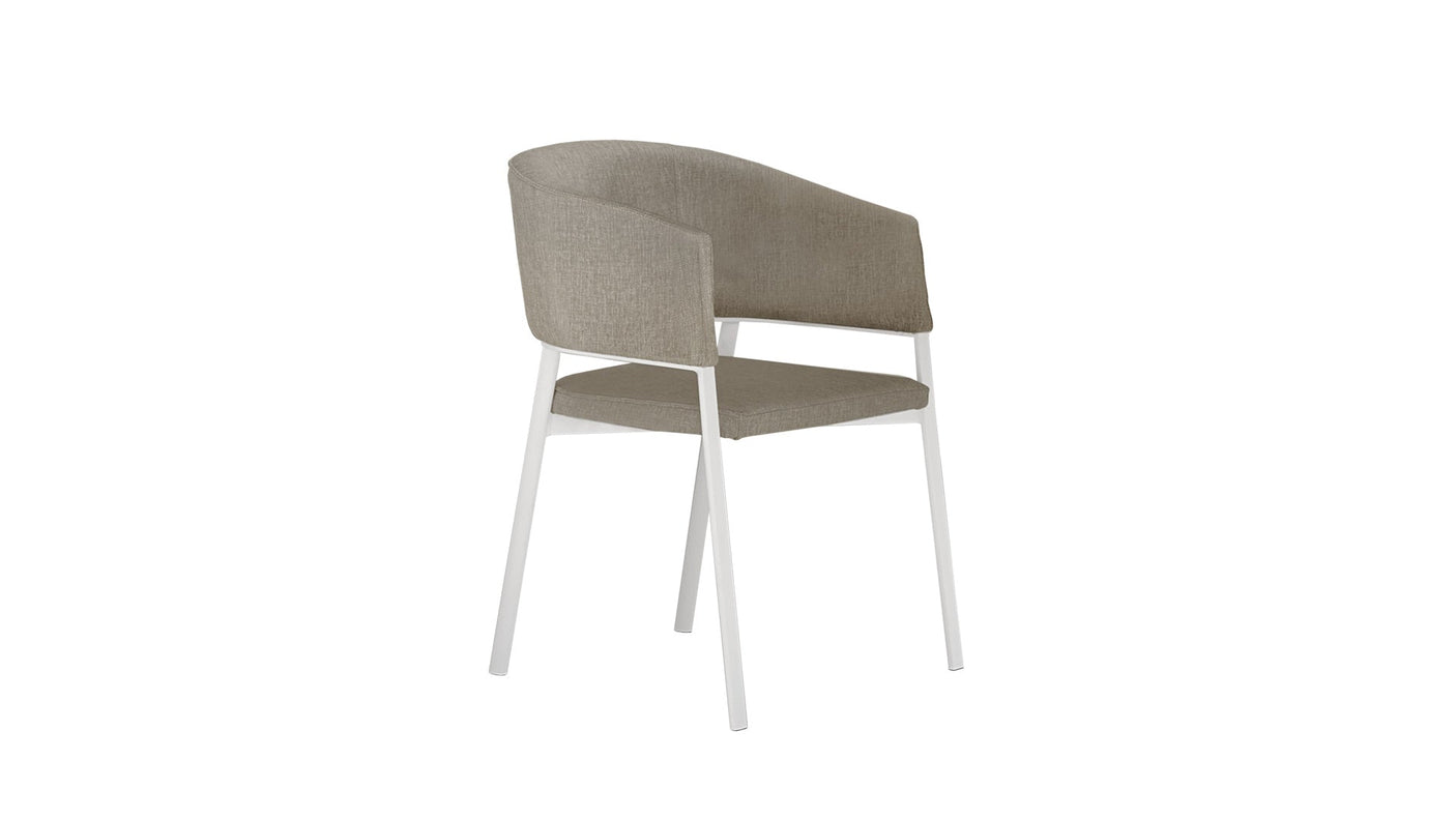 La chaise de repas d'extérieur Eden offre une assise large et accueillante comme tous les éléments d'une même collection. Combiné avec la table à manger, c'est une proposition raffinée et élégante pour des moments de détente à profiter du plein air. Structure en aluminium thermolaqué et rembourrage du dossier et de l'assise en mousse à séchage rapide.