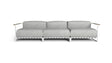 Le canapé d'extérieur modulable Casilda est au cœur de l'élégante collection de Ramon Esteve née de l'idée d'une déconstruction du mobilier classique. Les lignes graphiques simples des cadres sont la toile parfaite pour les éléments uniques qui définissent leur identité, tels que les sangles d'assise ou les inserts en marbre et en bois des accoudoirs. La structure est en acier inoxydable thermolaqué. Les assises et les dossiers sont soutenus par des sangles élastiques synthétiques spécifiques pour l'extérieur. Les coussins sont amovibles, faciles à laver et résistants aux agents atmosphériques. Rembourrage en mousse à séchage rapide. Les lattes des accoudoirs peuvent être en bois d'iroko, bois de pierre, travertin titane ou travertin argenté selon les combinaisons de couleurs.