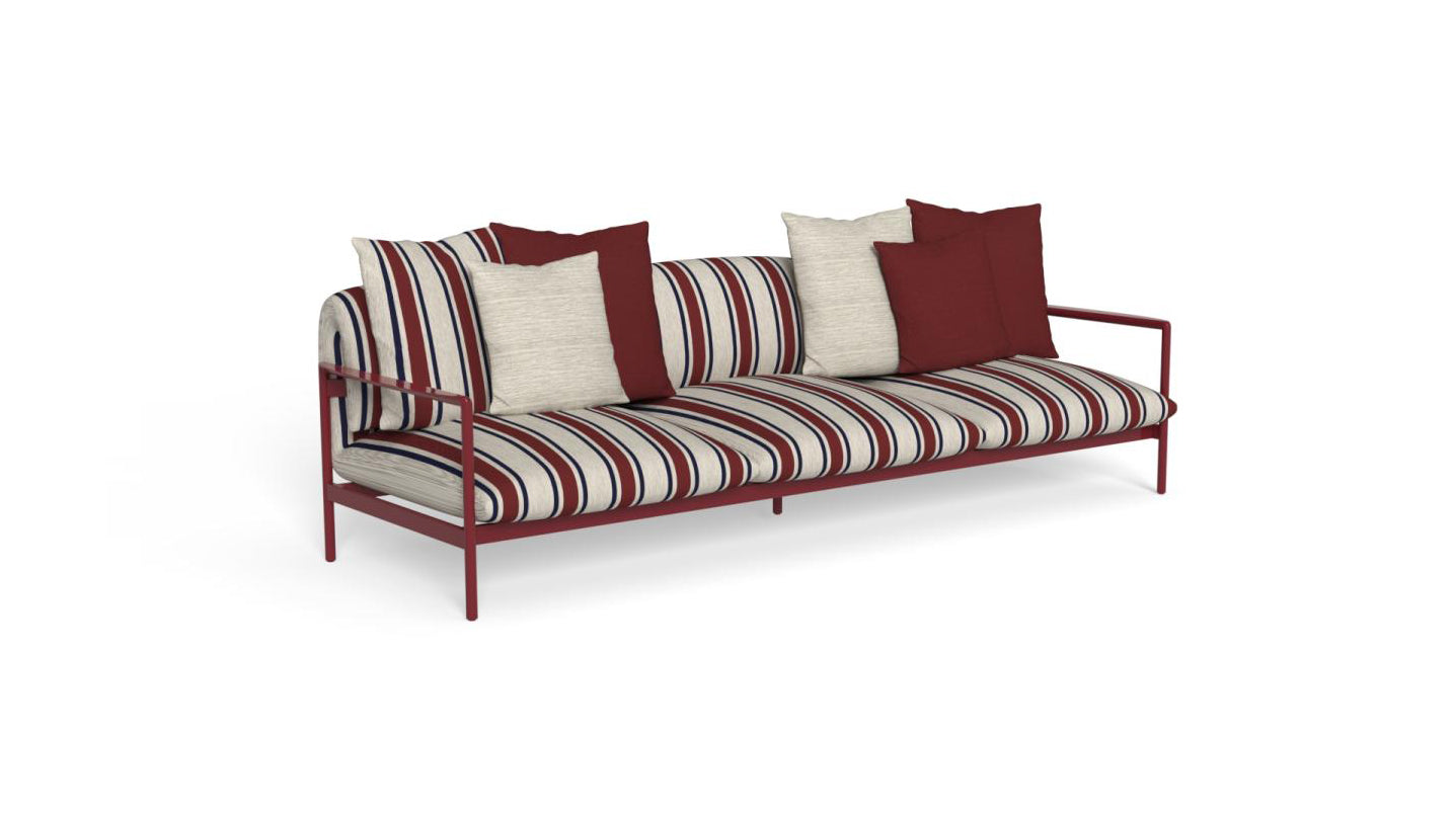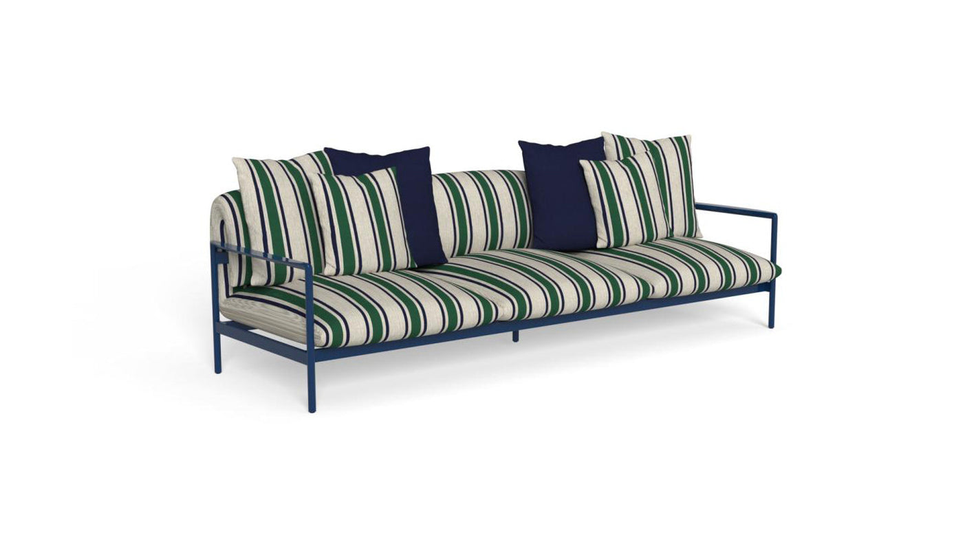 Moderne et sinueux, le canapé Nalu est un authentique hommage aux maîtres du design. L'idée d'une "nouvelle vague" de Ludovica Serafini et Roberto Palomba s'exprime dans toute son originalité dans les coussins d'assise qui deviennent dossiers, embrassant une structure en aluminium semi-poli au style rétro.