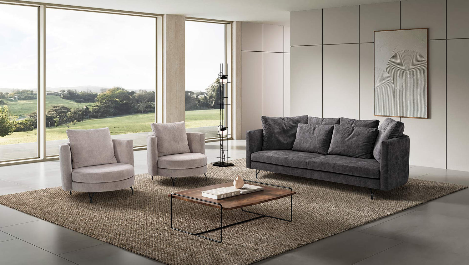 Des designs exclusifs, des pièces uniques, des matériaux de qualité. Ce canapé est un mélange qui il apporte une pensée vestimentaire et un design à la fois classique et contemporain au salon. Un mélange de combinaisons, de revêtements, de formes, le tout avec la même substance dont est fait le confort. Dans les détails donc, dans ces poufs et dans ces fauteuils se trouve le langage stylistique de la marque.