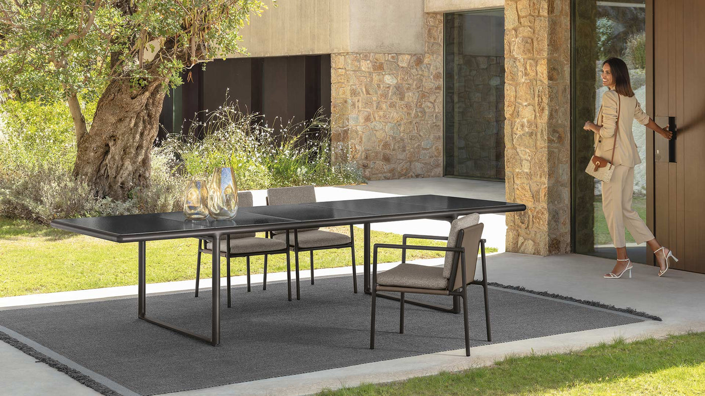 La chaise de salle à manger Tressé est une solution de design élégante, qui répond au besoin de plus de confort pour votre salon. La fine structure tubulaire en aluminium présente un design élégant et équilibré qui offre une stabilité à l'assise et au dossier, tous deux enrichis par des bandes en éco-cuir et des coussins moelleux, disponibles en tissus de chanvre ou de gardénia. La combinaison de ces éléments rend la chaise sophistiquée et adaptable à tout type d'environnement extérieur.