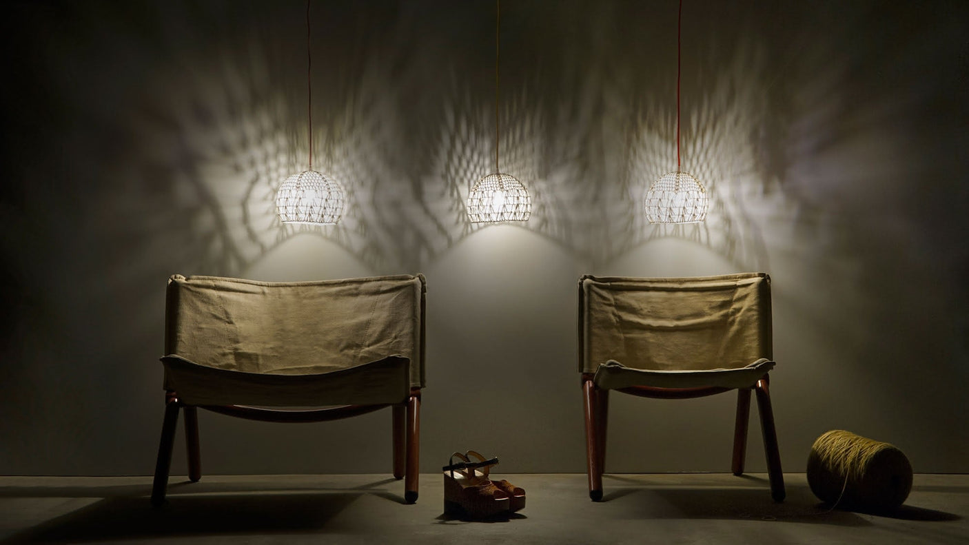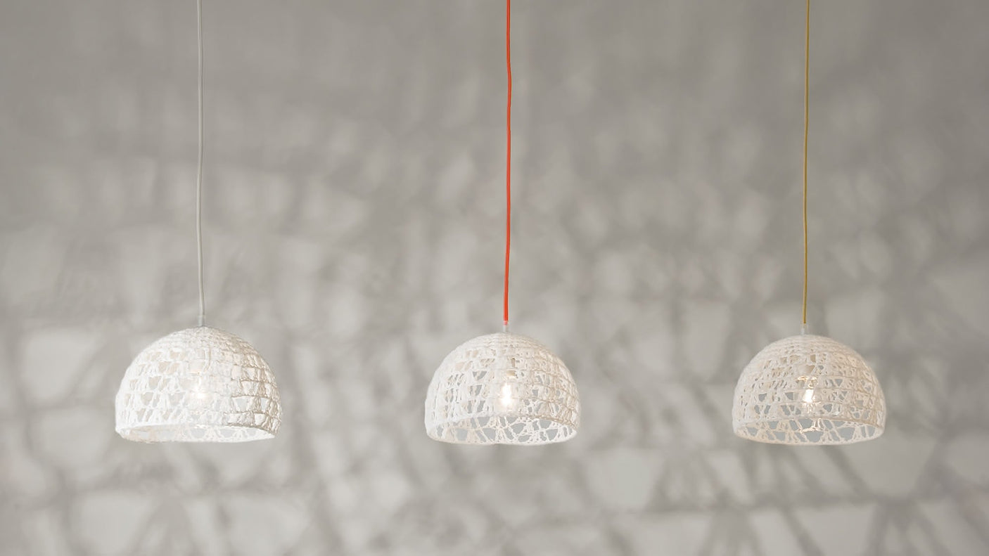 Ces lampes sont caractérisées par une structure en treillis faite entièrement à main, solidifié et rendu ignifuge par la résine. Avec ce dispositif, le chapeau conserve l'aspect visuel du tissu cousu à main, mais quand on va le toucher il est solide et durable. La lampe donne un effet extraordinaire a l'atmosphère en créant avec le 'crochet' un environnement suggestif de lumière et d'ombre, très intense et chaleureux. Ampoule non fournie (230V, E14 max 30w - rec. LED 6w).