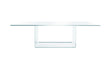 Table avec base en verre courbé transparent extra-clair avec partie au sol laquée, différentes finitions. Plateau disponible en verre trempé ou en bois, différentes finitions.