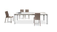 Table Leon T98 avec pieds en frêne dont deux à roulettes, disponible avec plateau en verre, vitrocéramique kéramique, placage frêne brossé, mélamine. Le cadre télescopique super extensible s'étend permettant l'insertion manuelle et progressive d'extensions emboîtables.