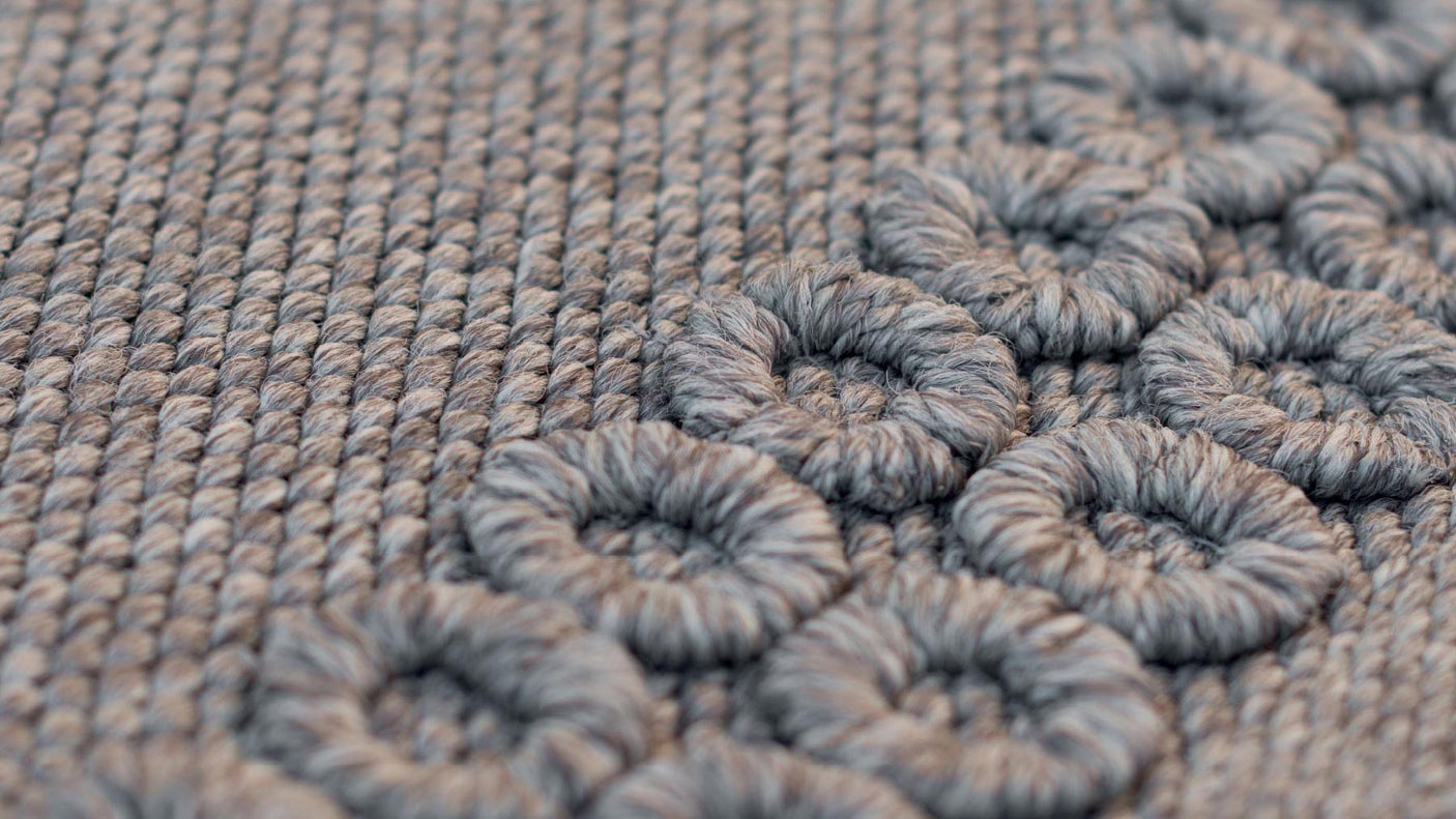 Tapis en fil de fibres synthétiques et doté d'un traitement hydrofuge, anti-taches et anti-moisissure. Le fil PP a un rendement optimal dans les environnements extérieurs, pour la durabilité et la résistance aux agents atmosphériques et a une grande stabilité aux rayons UV.